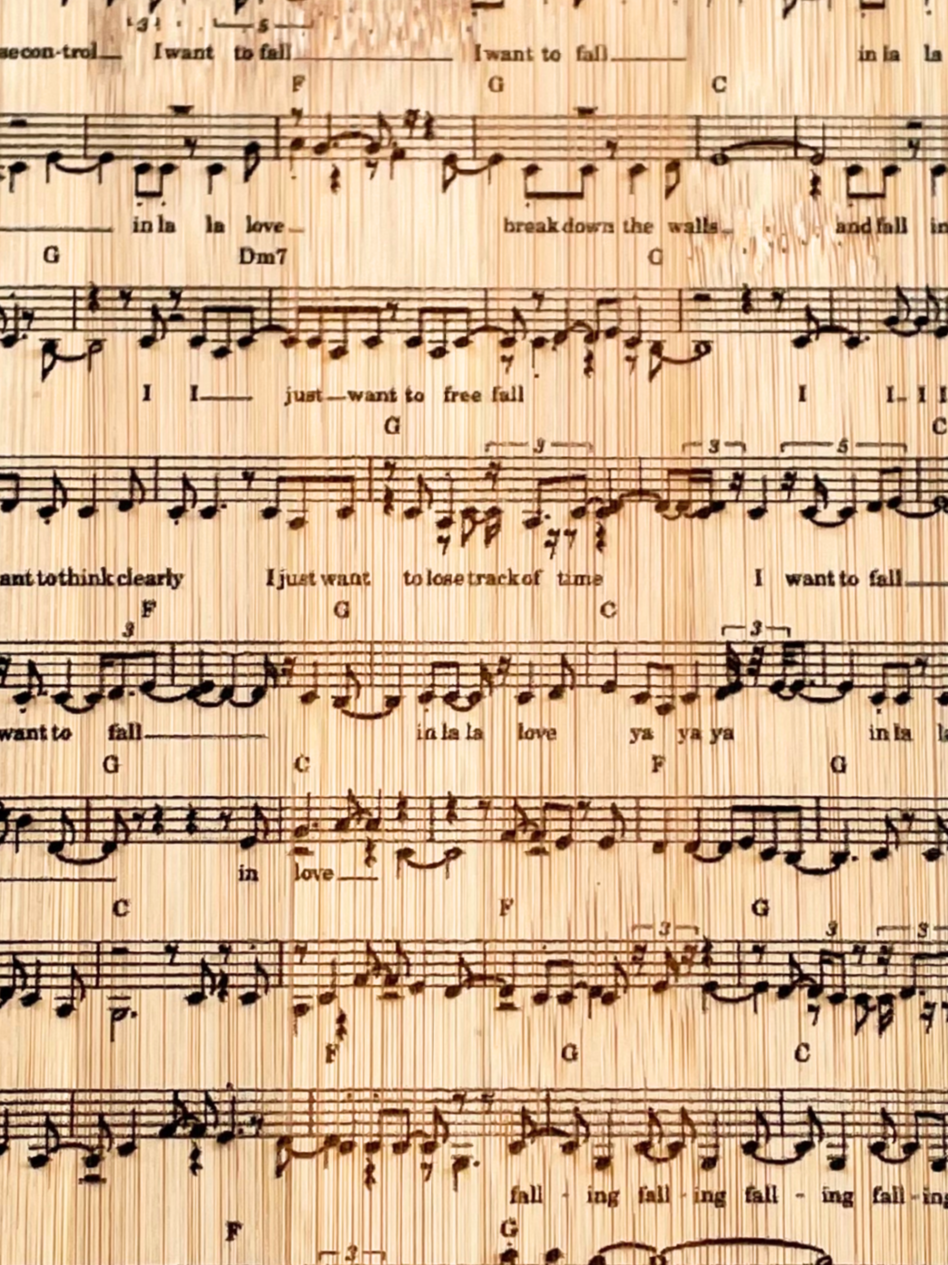 Laser Engraved 'I Want To Fall' lyrics and sheet music for the song!
